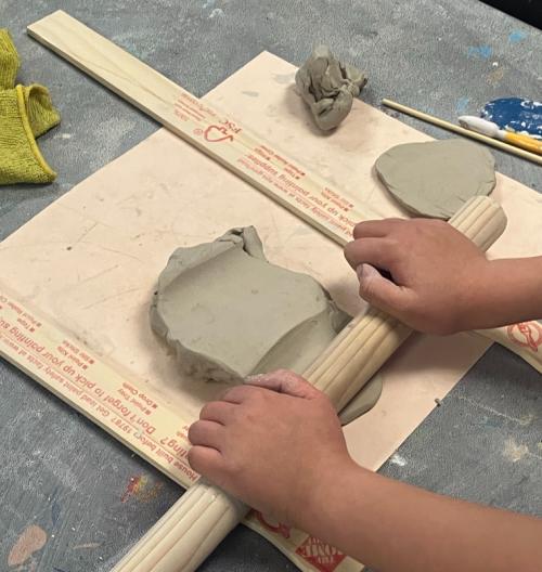 Someone rolling clay